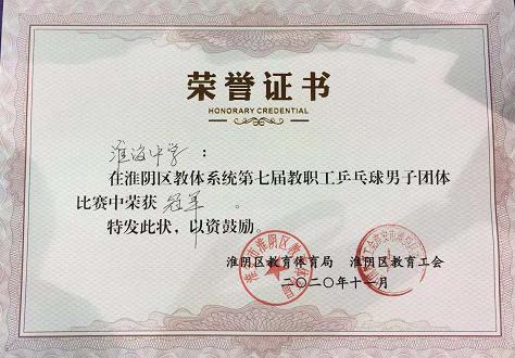 淮海中(zhōng)學獲得淮陰區教體(tǐ)系統第七屆教職工(gōng)男子但去團體(tǐ)冠軍