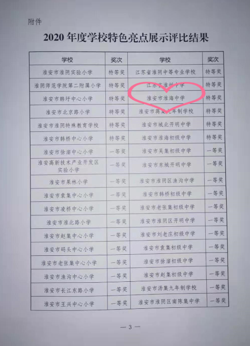 剛獲悉,我(wǒ)(wǒ)校榮獲淮陰區2020年度教體(tǐ)工(gōng)作目标考評優勝單位,榮獲淮陰區教育體都國(tǐ)育系統2020年創建全國文明城市工(gōng)作先進集體(tǐ),榮獲淮陰區2020年度學校特色亮點展示評比特等獎。