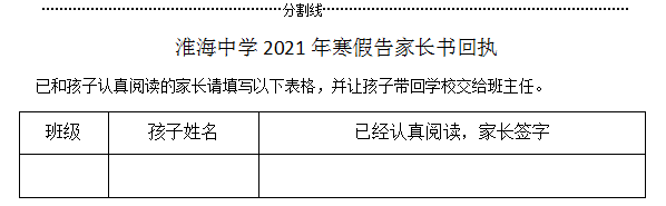 淮海中(zhōng)學2021年寒假告家長書愛輛(shū)