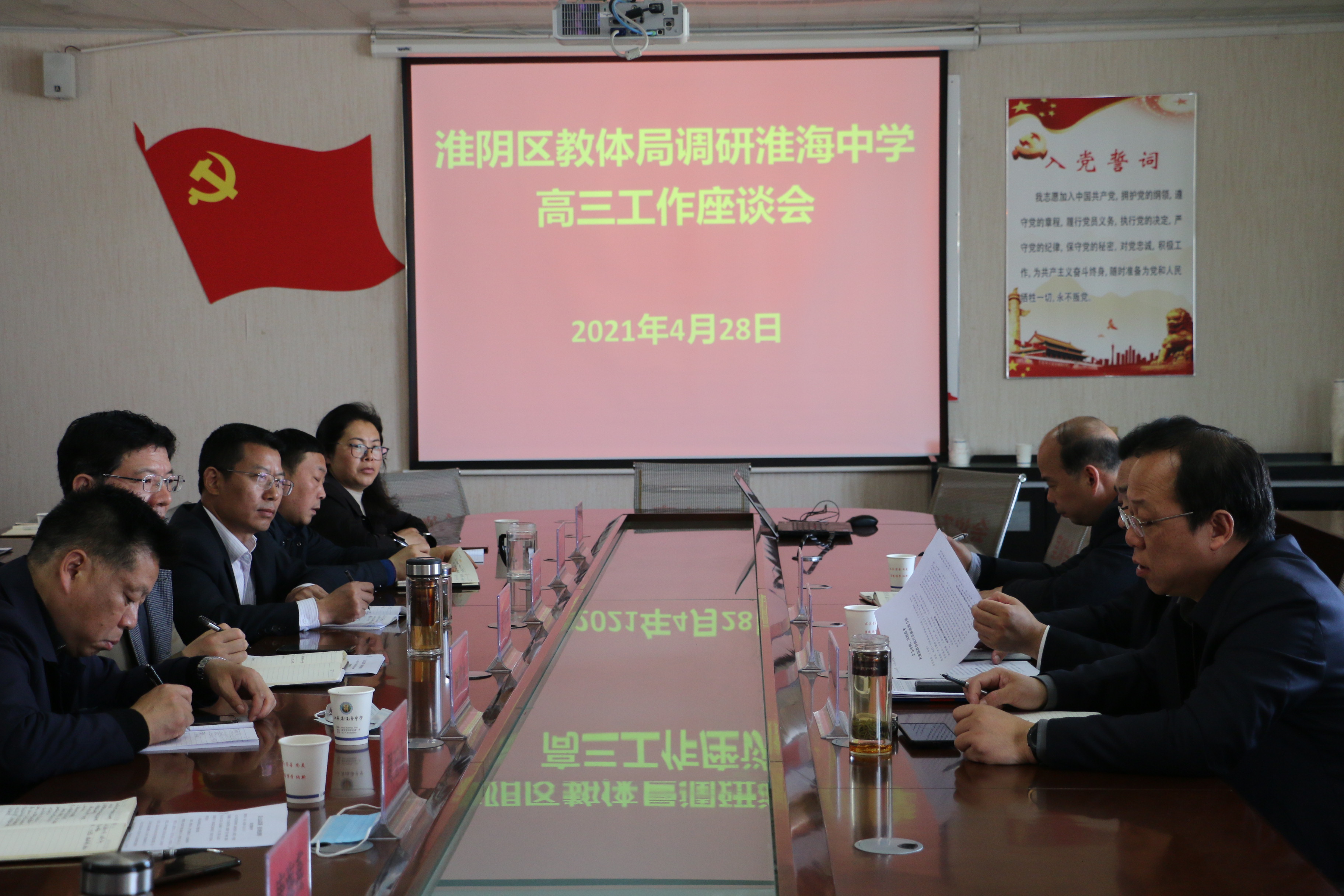 4月28日上午,淮陰區教體(tǐ)局局長李偉偉,副局長朱衛民,中(z高身hōng)教科科長張愛保一(yī)行到我(wǒ)(wǒ)校調研202資科1屆高三備考工(gōng)作。校長安燕坤帶領班子成員(yuán)陪同調研。