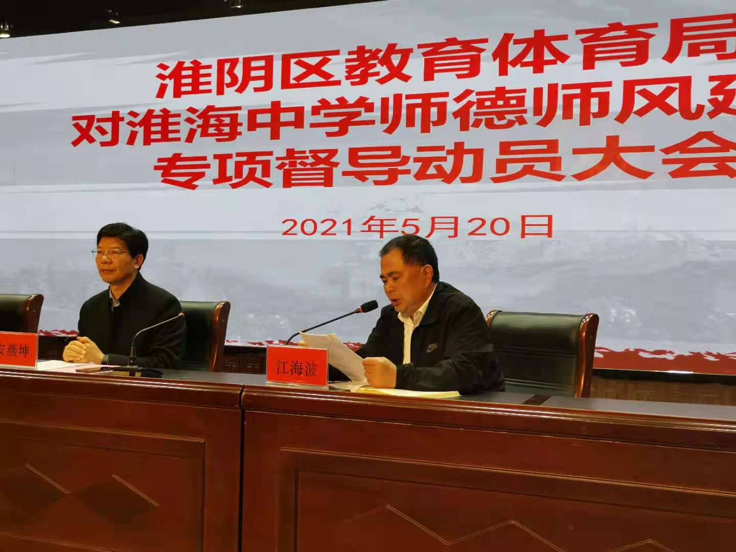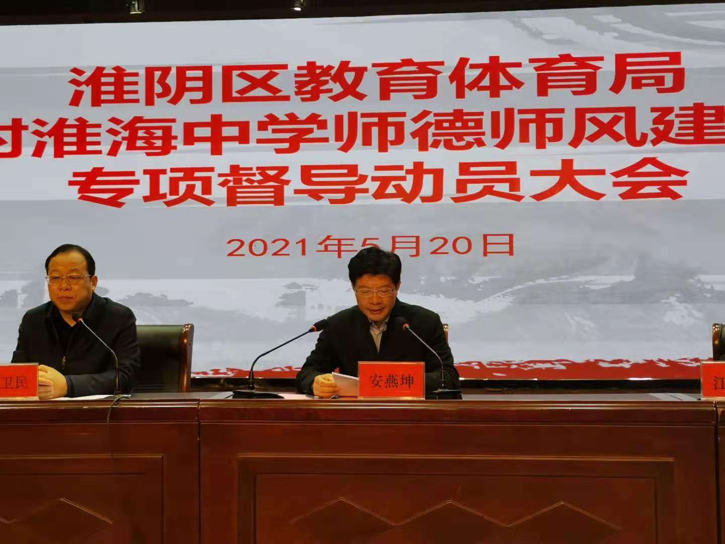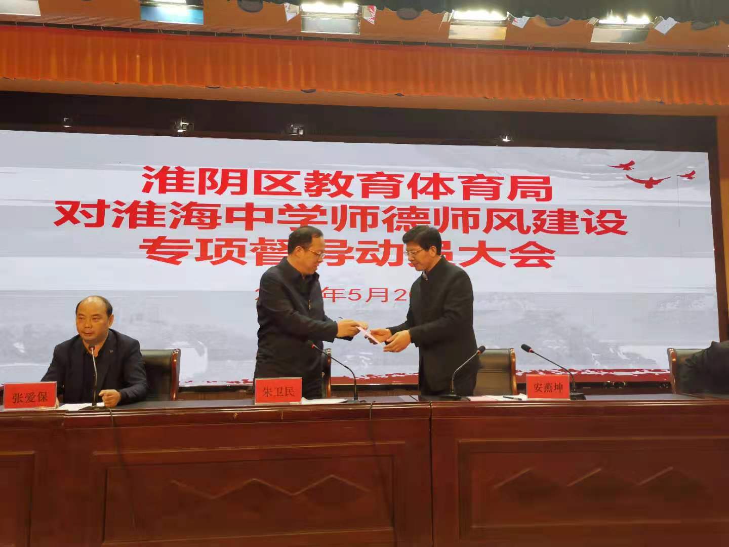 為了“着力提升思想政治素質,全面加強師德師風建設”,那刀促進教師争做一(yī)名優秀的人民教師,5月到明20日,淮陰區教體(tǐ)局副局長朱衛民一(yī)行人對我快綠(wǒ)(wǒ)校全體(tǐ)教師進行師德師我唱風建設進行專項督導。中(zhōng)教科科長裡們張愛保主持,我(wǒ)(wǒ)校全體(tǐ內在)教職員(yuán)參加活動。
