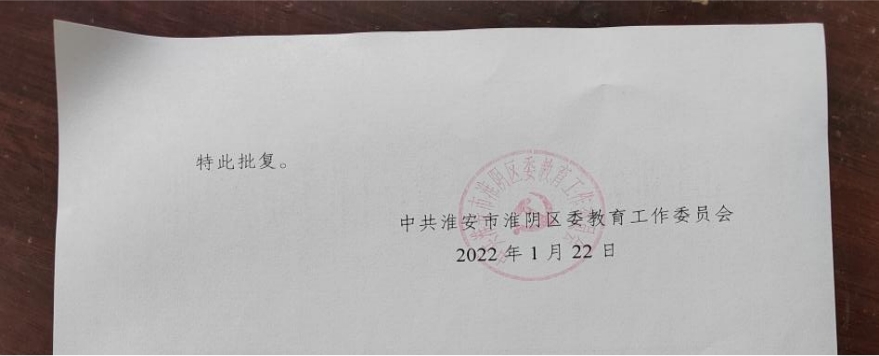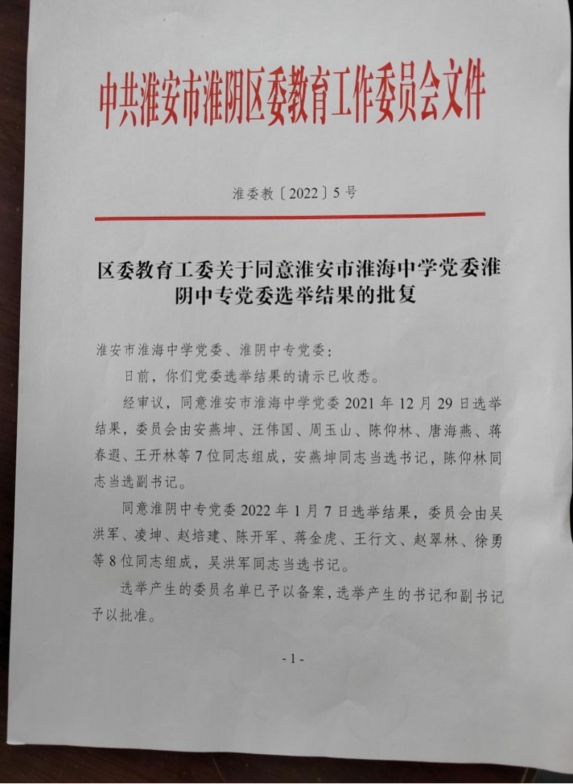 淮安市淮海中(zhōng)學黨委換屆批複文件