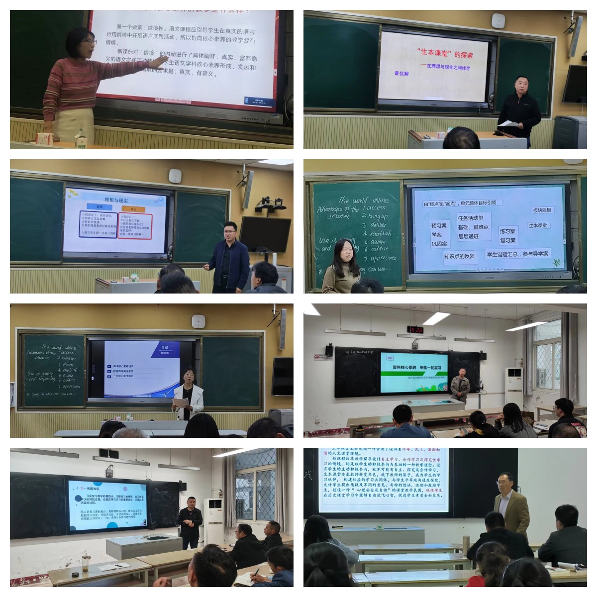 本次活動以各教研組為單位,分(fēn)學科開(k物數āi)展。石立虎、夏成龍、賀曉娟、胡翠紅、孟慶順、楊志(zh睡作ì)峰、孫海鵬、薛亮、張園園等九位老師開(kāi)設了示範課長動。課堂上,九位老師充分(fēn)展現了紮實的教學基本功以及專業知(zhī)識與師黃學科教學的深度融合。他們以生(shēng)為本、引導學生(shē木他ng)自主學習、自主探究,讓不同層次的學生(shēng)通過學習提升自我(跳報wǒ)(wǒ)解決問題能力。學生(shēng)家工自學、群學環節呈現了自然、規範的學習狀态,學生(shēng)熱北展示和點評環節展現了自信、自主的精神風貌。自學、研讨、提問、講解、修正關藍等環節都展現出學生(shēng)們良好學科素養,充分(fēn)的會體(tǐ)現了生(shēng)本課堂的教制木學理念。