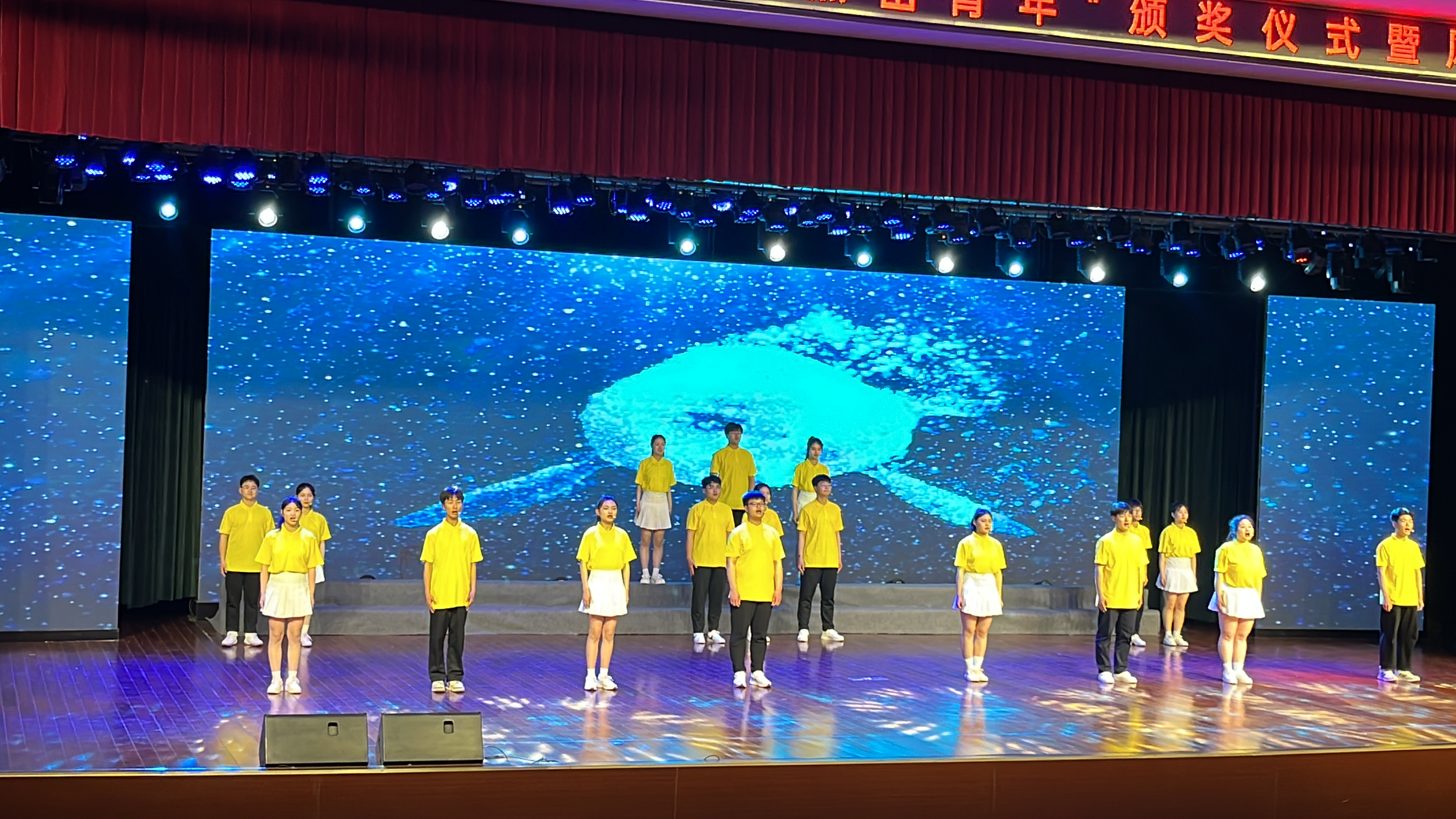 5月4日下(xià)午,在淮陰區“十大(dà)傑出青年”頒獎儀式暨風采展輛女示活動中(zhōng),淮海中(zhōng)學“聲·間媽悅”合唱(chàng)社團呈上了兩個悅耳悅心的音樂節目兵問。