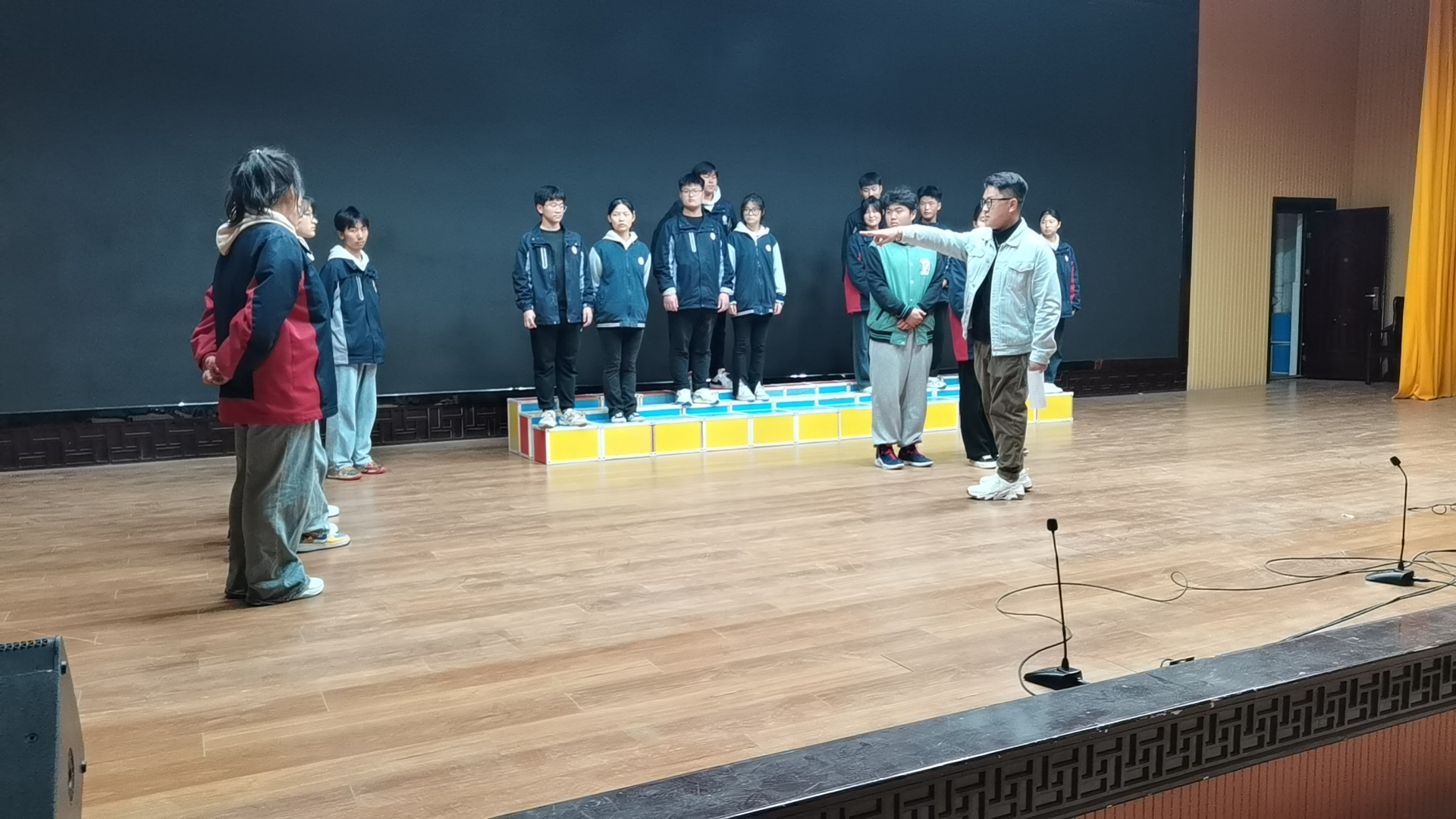 殷彬導演指導學生(shēng)站位、走台